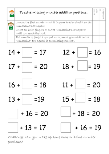 Missing Numbers from Addition and Subtraction Sentence Designed to build fluency and intuitiveness in basic addition and subtraction, this missing numbers game helps Grade 1 children understand the relationship between addition and subtraction. What's inside? - Identify the missing numbers (addends, subtrahends or minuends) in addition and subtraction sentences using visual models.