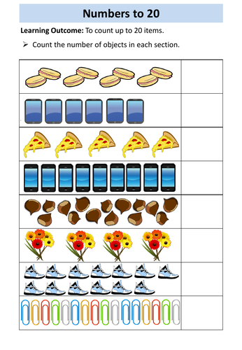 Counting practice worksheets 1-20 | K5 Learning Count objects 1-20 More numbers worksheets Explore all of our learning numbers worksheets (recognizing and printing numbers), counting worksheets (counting objects, skip counting, counting backwards) and comparing numbers worksheets ("more than", "less than", ordering numbers). What is K5?